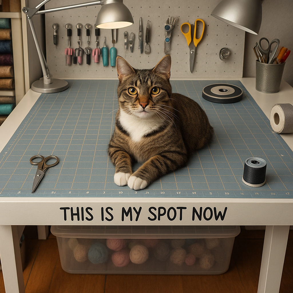 Bonus points if you vacuum the thread tumbleweeds under the table – I use this one and it works like magic for picking up threads and fabric bits. You don’t have to aim for perfection – just enough order so you don’t scream “Where’s my rotary cutter?!” next time. And of course, make the sacred vow we all make: “I’ll keep it tidy from now on.” (Spoiler: You won’t. But it’s cute that we try.)