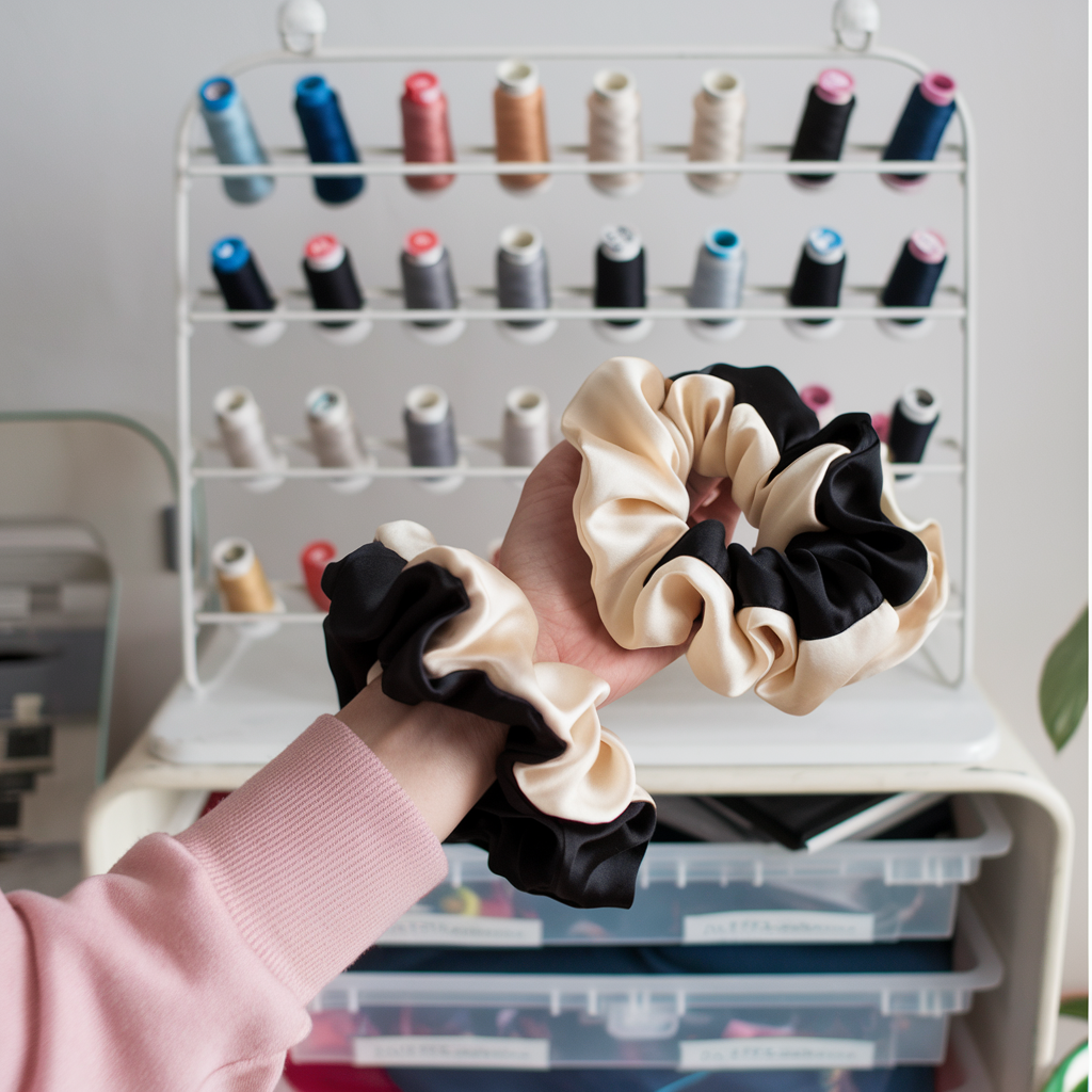 Now, onto the fun part: creating! Let’s make something fabulous, shall we? How about a line of chic scrunchies, each one a tiny masterpiece? Here’s my step-by-step guide for creating a fabric scrunchie: